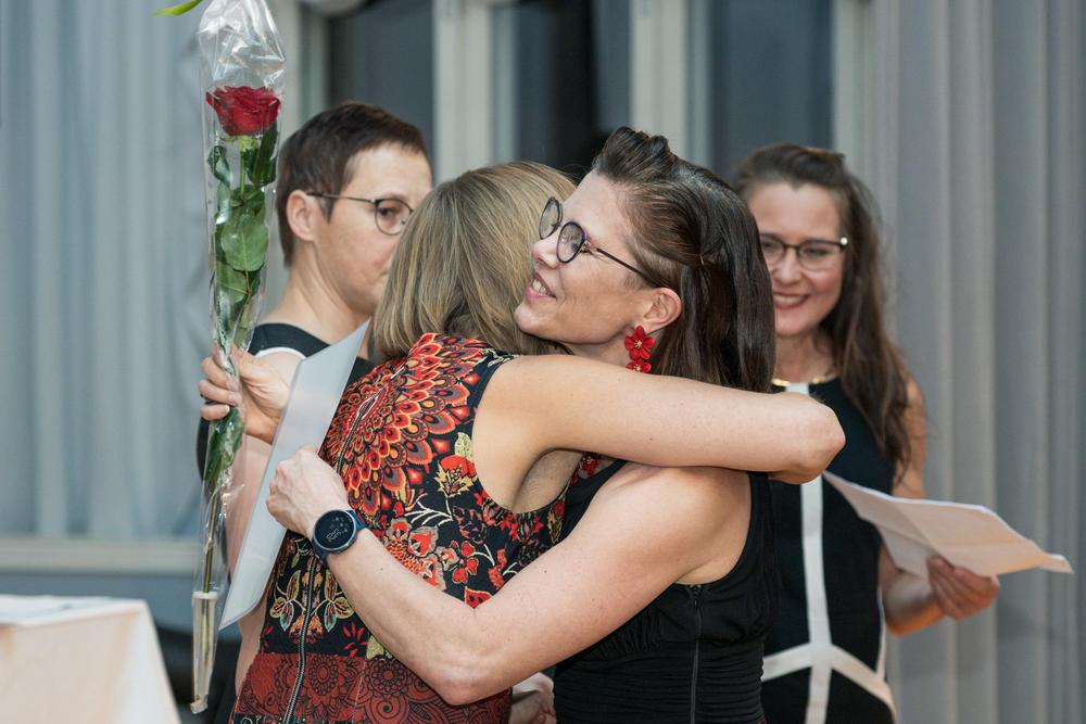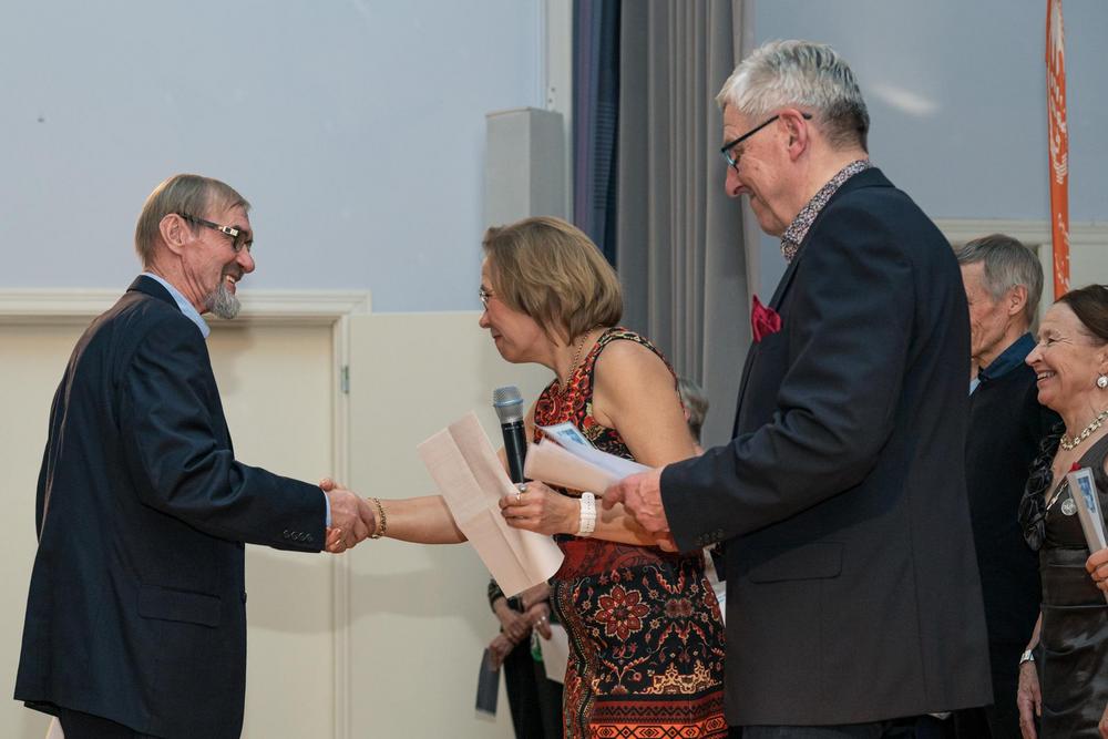 Hopeisen ansiomerkin saivat seuran taloudenhoitaja ja johtokunnan jäsen Paula Helpiölä, johtokunnan varajäsen ja aktiivinen kilpailutoimitsija Mika Hemmilä, monissa seuran johtotehtävissä ansioitunut Reijo Kauppila, nettisivuista, tilastoinnista ja kilpailutiedotuksesta vastaava Jorma Ojen ja seuran puheenjohtaja Anja Rovio.